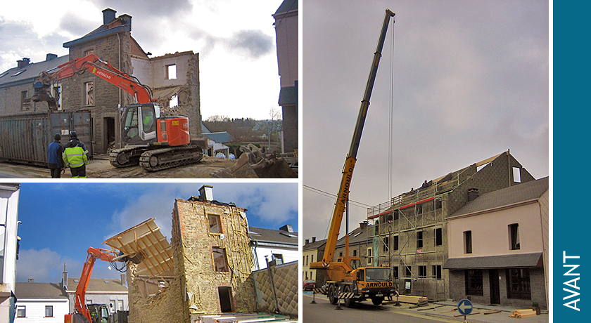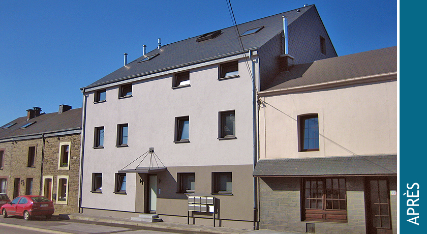 Entre 2 maisons existantes et mitoyennes, démolition d’un ancien bâtiment et création de 7 logements sur 5 niveaux.